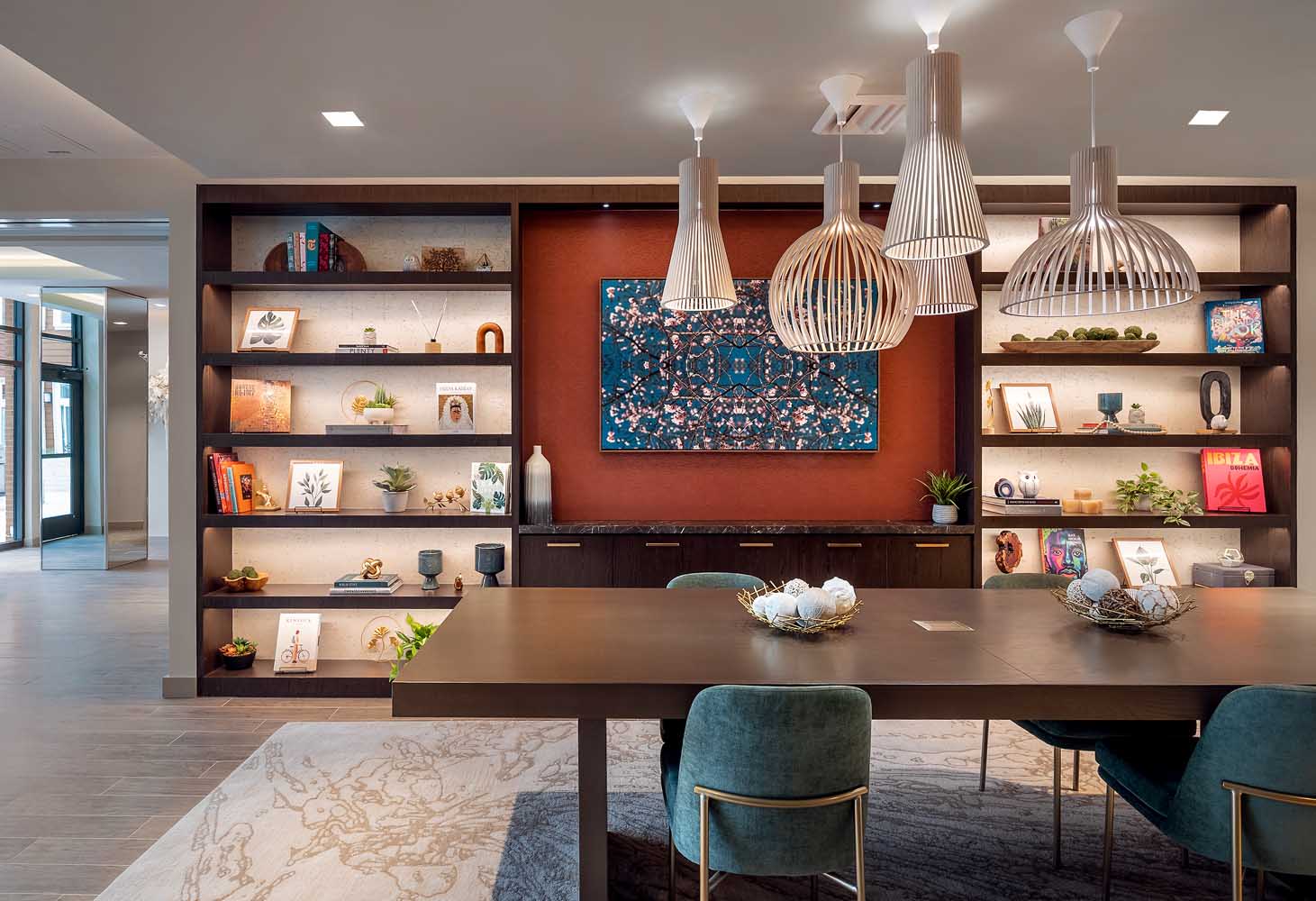 - Coworking lounge with private meeting rooms